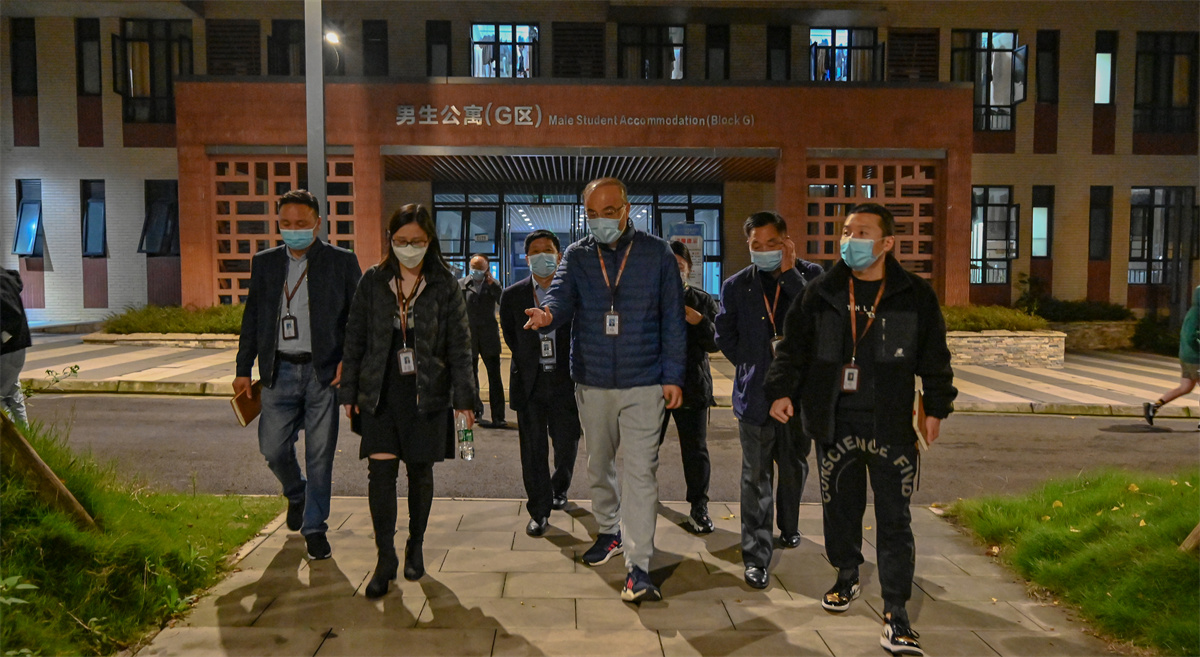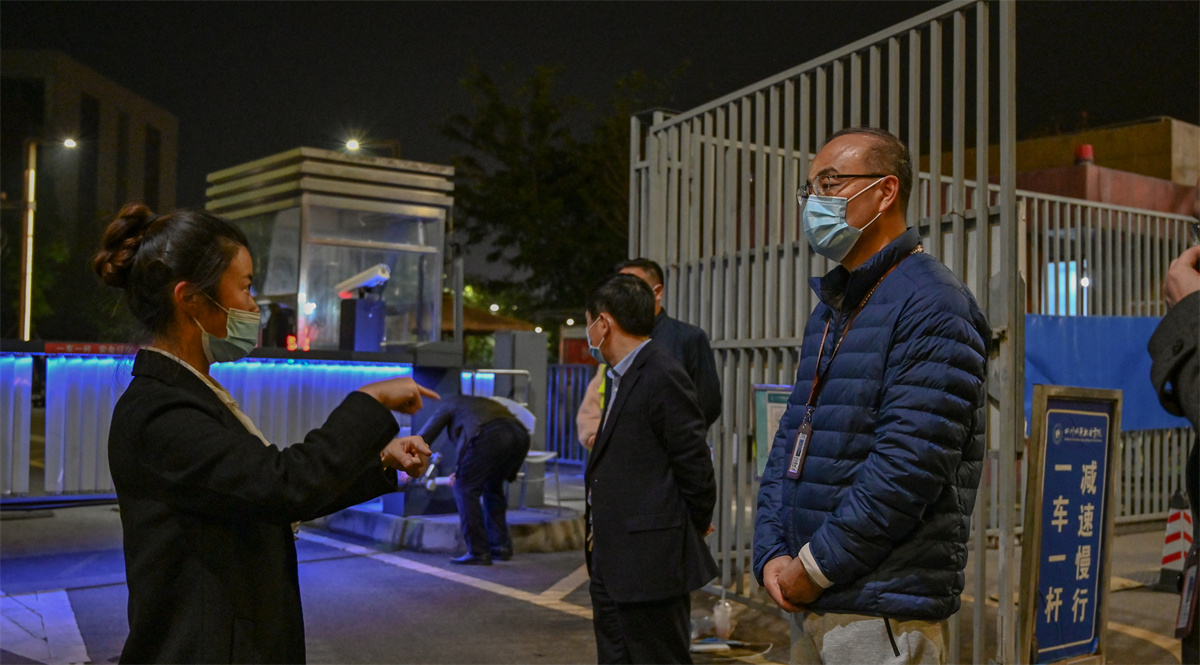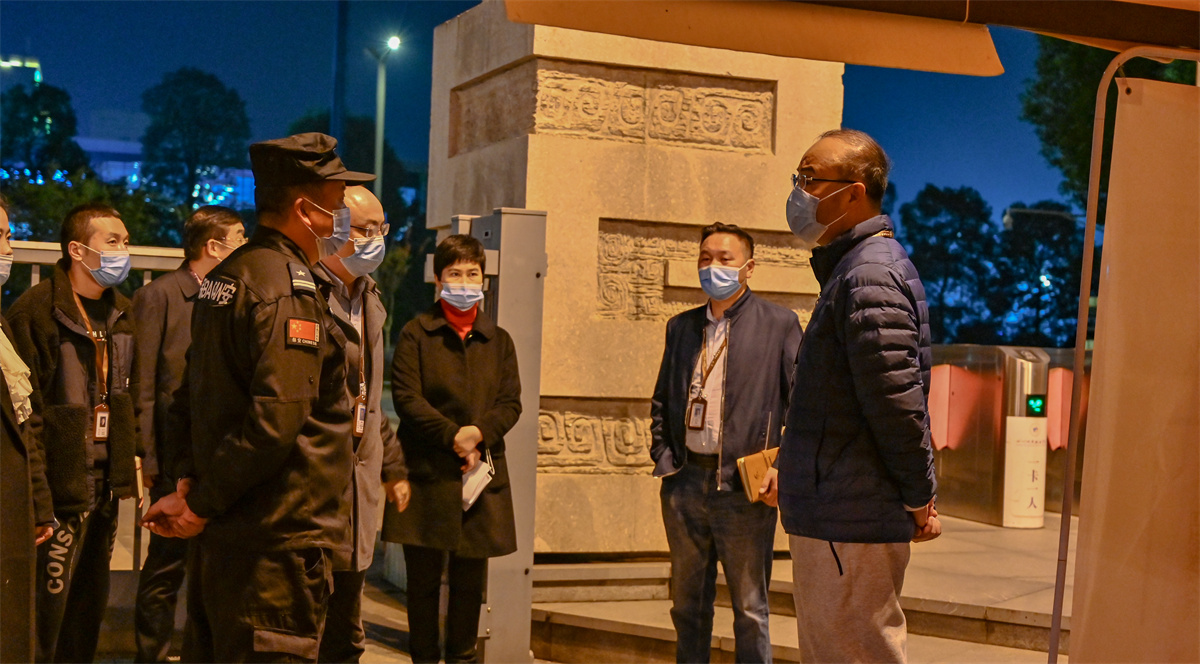 金年会讯(党委宣传部 郭旭东)11月4日晚上,校长王世伦一行巡查校园检查疫情防控工作。王世伦一行先后巡查眉山校区校门口等防疫重点区域和宿舍等学生生活区,详细了解校门管控、在校学生的生活学习情况以及防疫物资的准备情况。巡查结束后,召开会议听取了各相关部门疫情防控工作开展情况,并作出指示和要求。